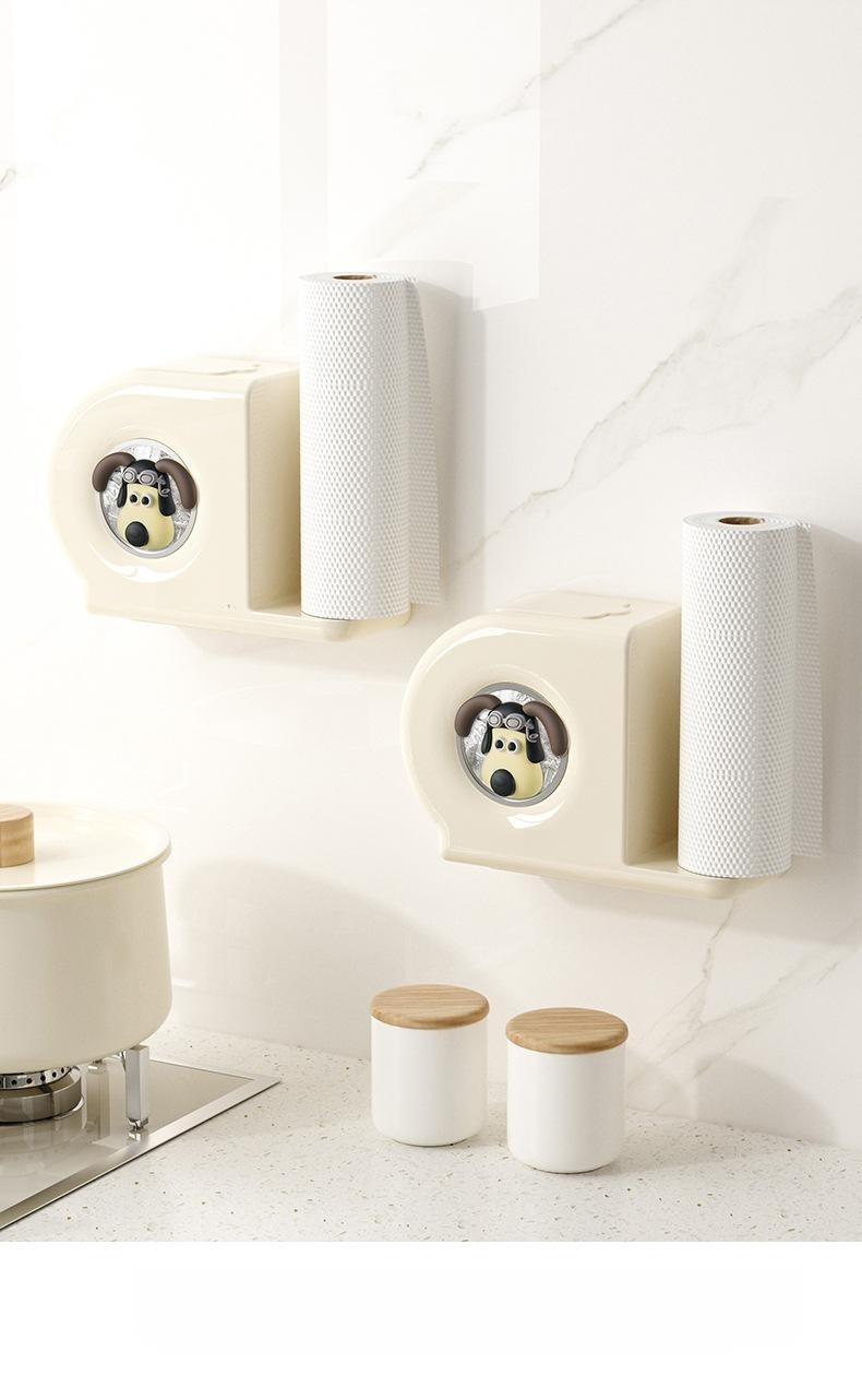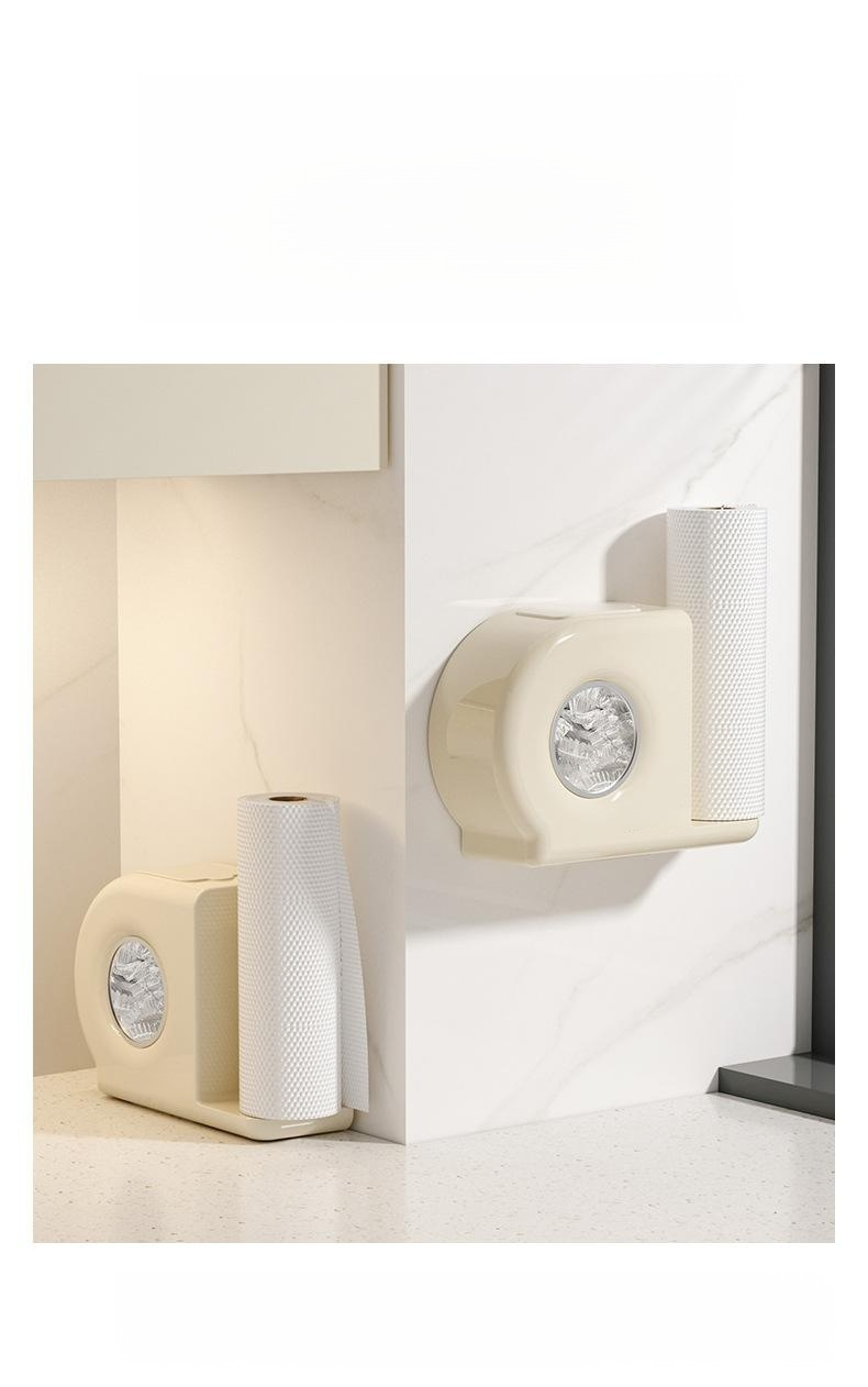 주방 벽면 장착형 2-in-1 수납 플라스틱 랩 수납 박스 세트 펀치 없는 추출 벽면 장착형
